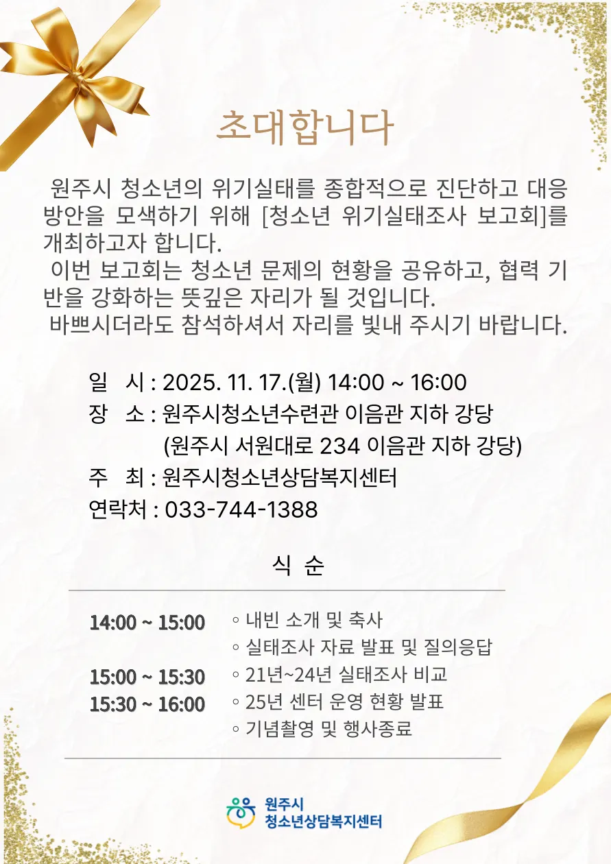청소년 위기실태 보고회 안내 - 원주시청소년상담복지센터