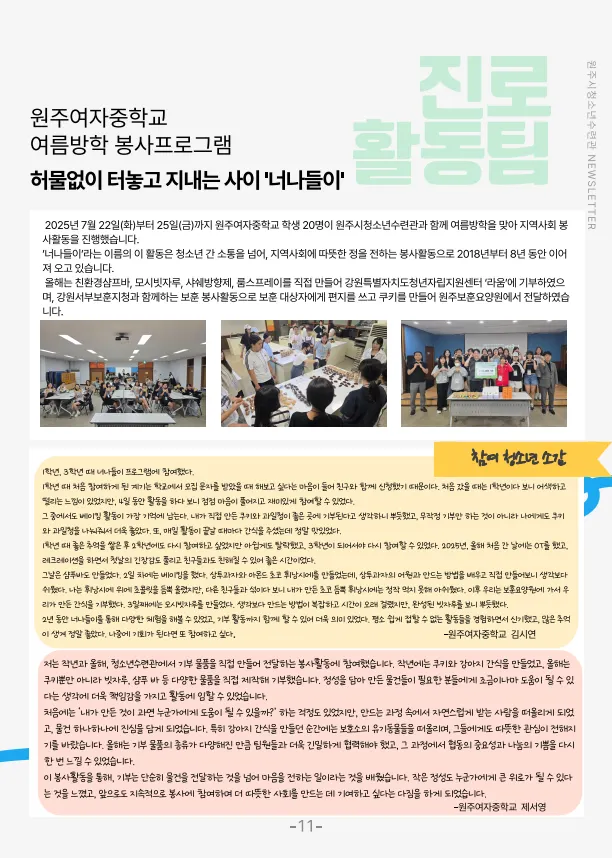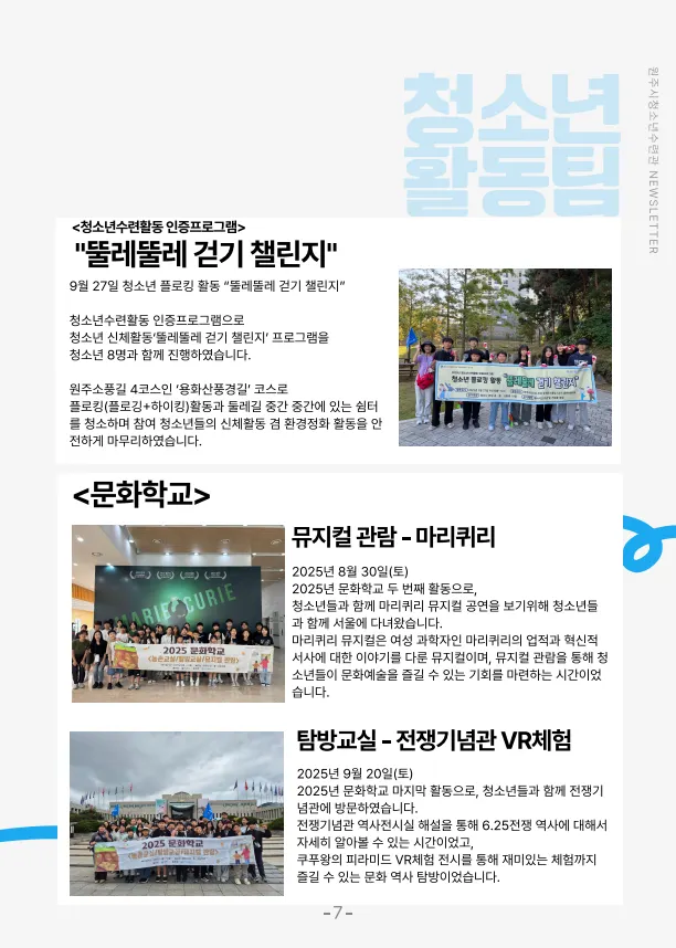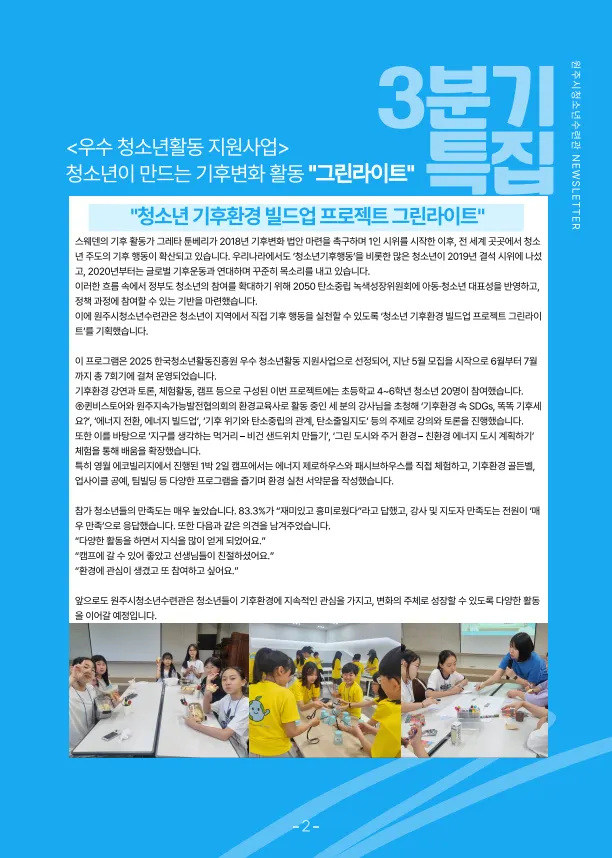 원주시청소년수련관 3분기 소식지