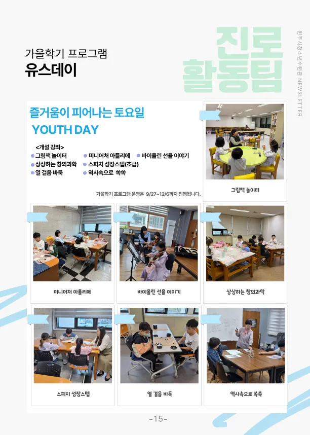 [원주시청소년수련관]가을학기 '유스데이' 프로그램 참여자 모집 안내