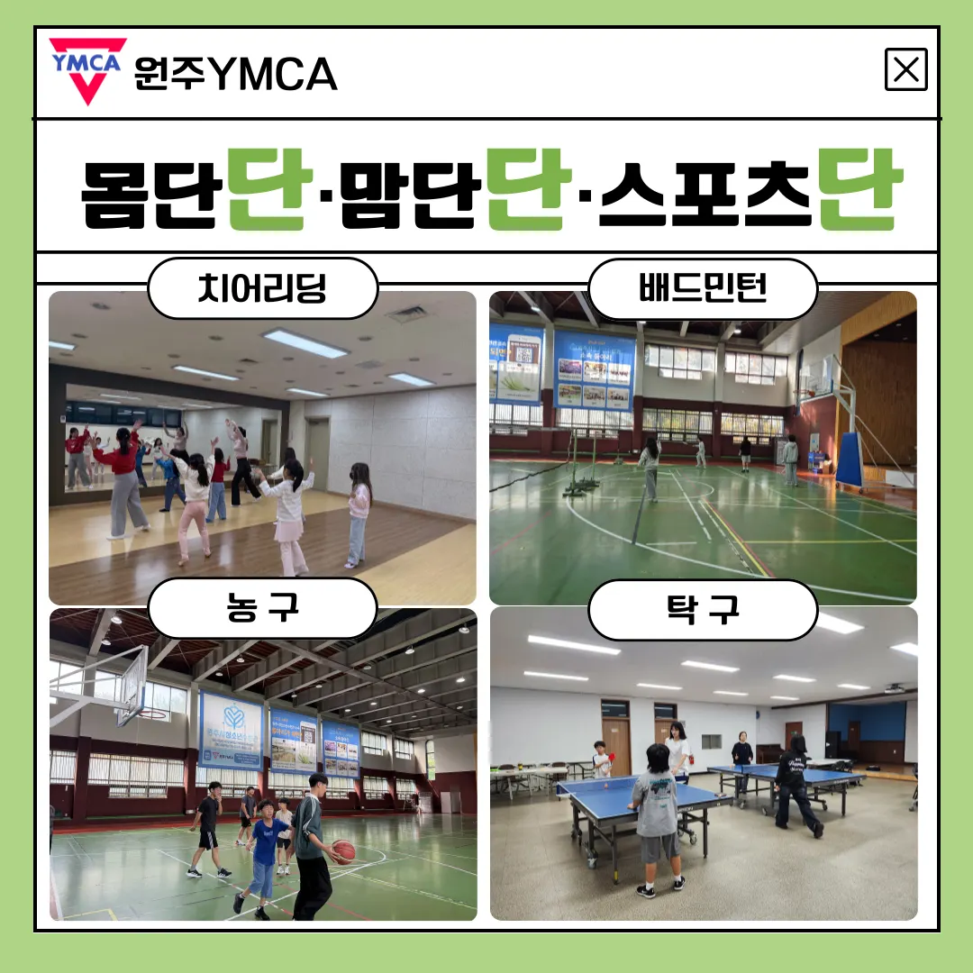 원주YMCA에서 “몸단단·맘단단·스포츠단” 프로그램이 안전하게 마무리 되었습니다. 이번 프로그램을 통해 청소년들의 기초체력 증진은 물론, 자신감 형성과 도전 역량 강화에 긍정적인 성과를 거두었습니다.