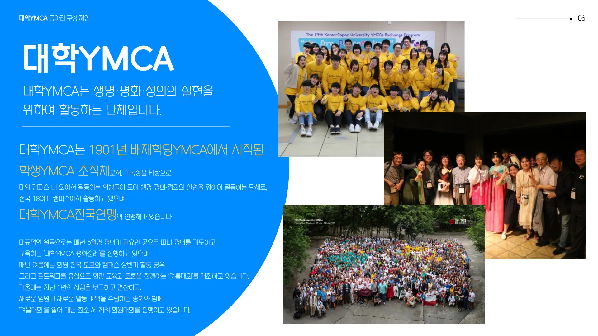 대학YMCA는 생명·평화·정의의 실현을 위하여 활동하는 단체입니다