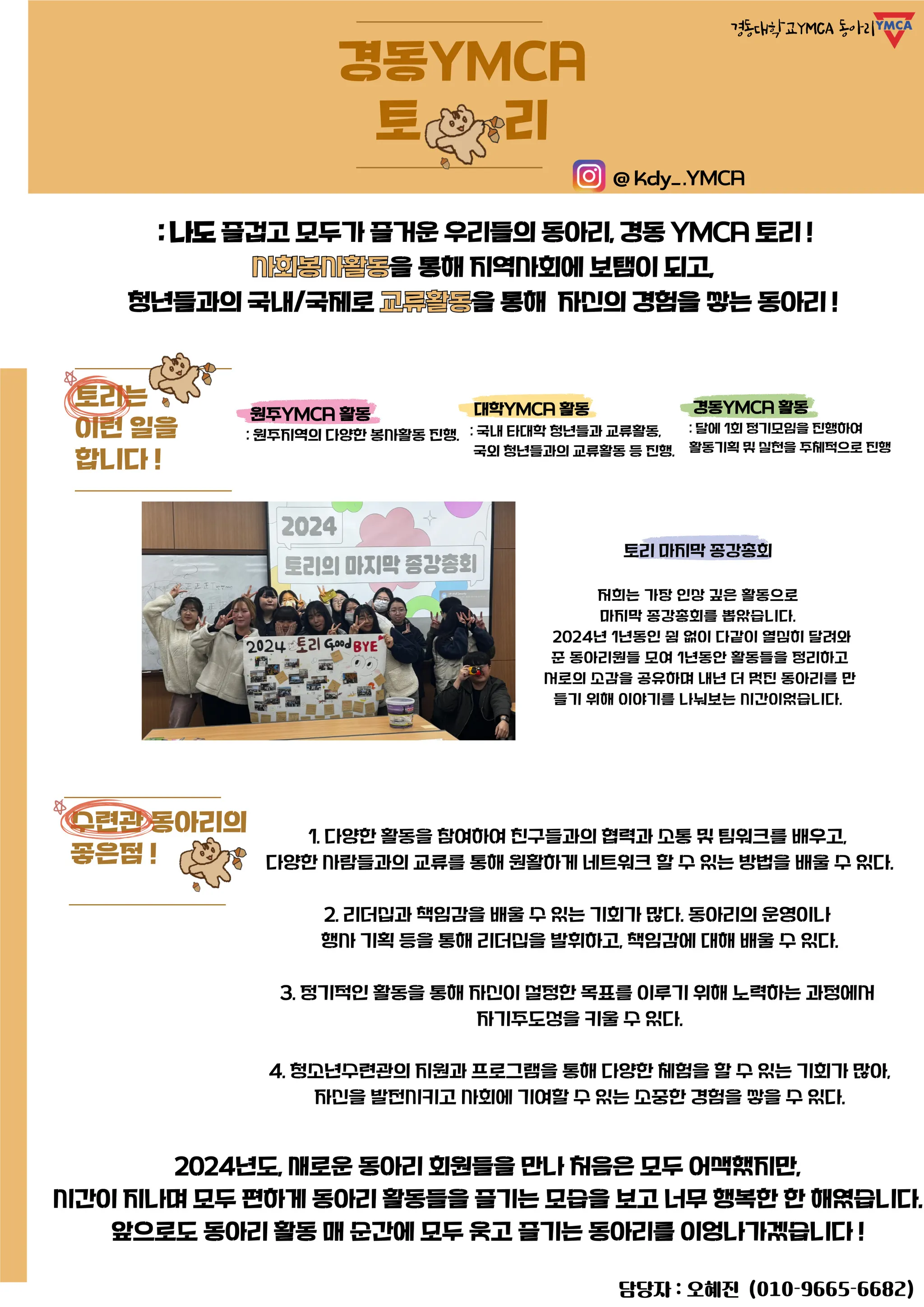 대학YMCA전국연맹에서 활동하는 경동대학교YMCA이며