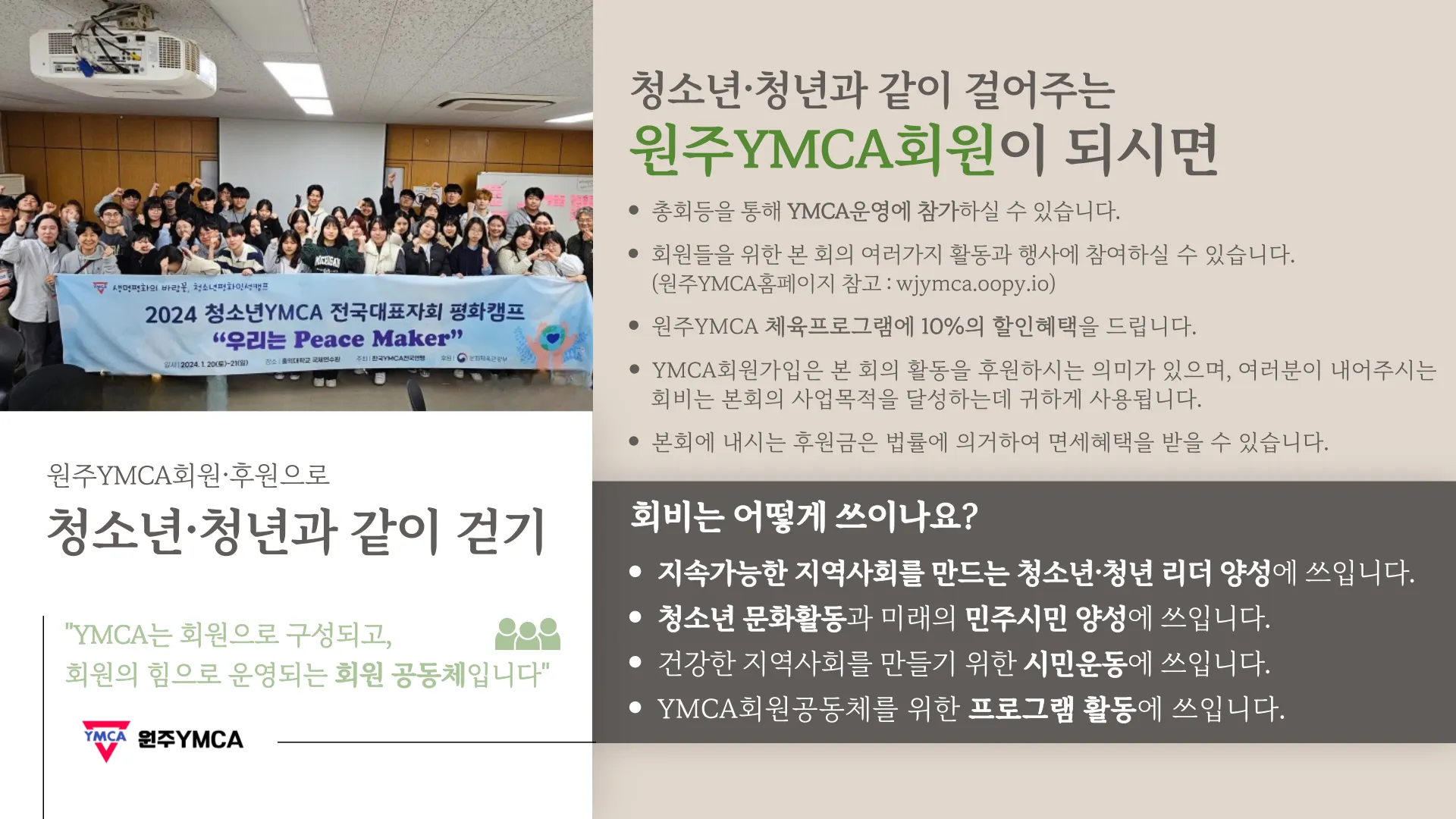 함께 만드는 평화로운 세상! 원주YMCA 회원이 되어 주세요.